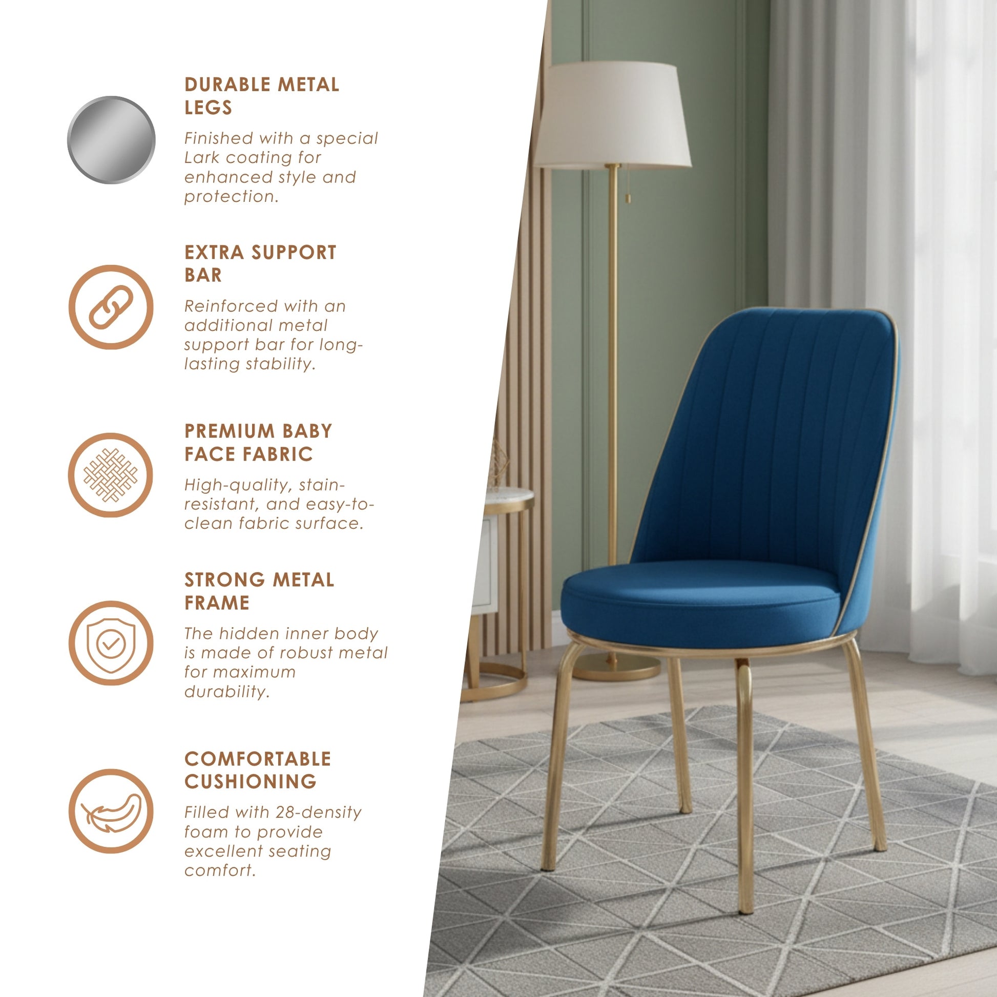 Sturdy Metal Legs: Special lacquer-coated metal legs provide both long-lasting strength and a modern look.