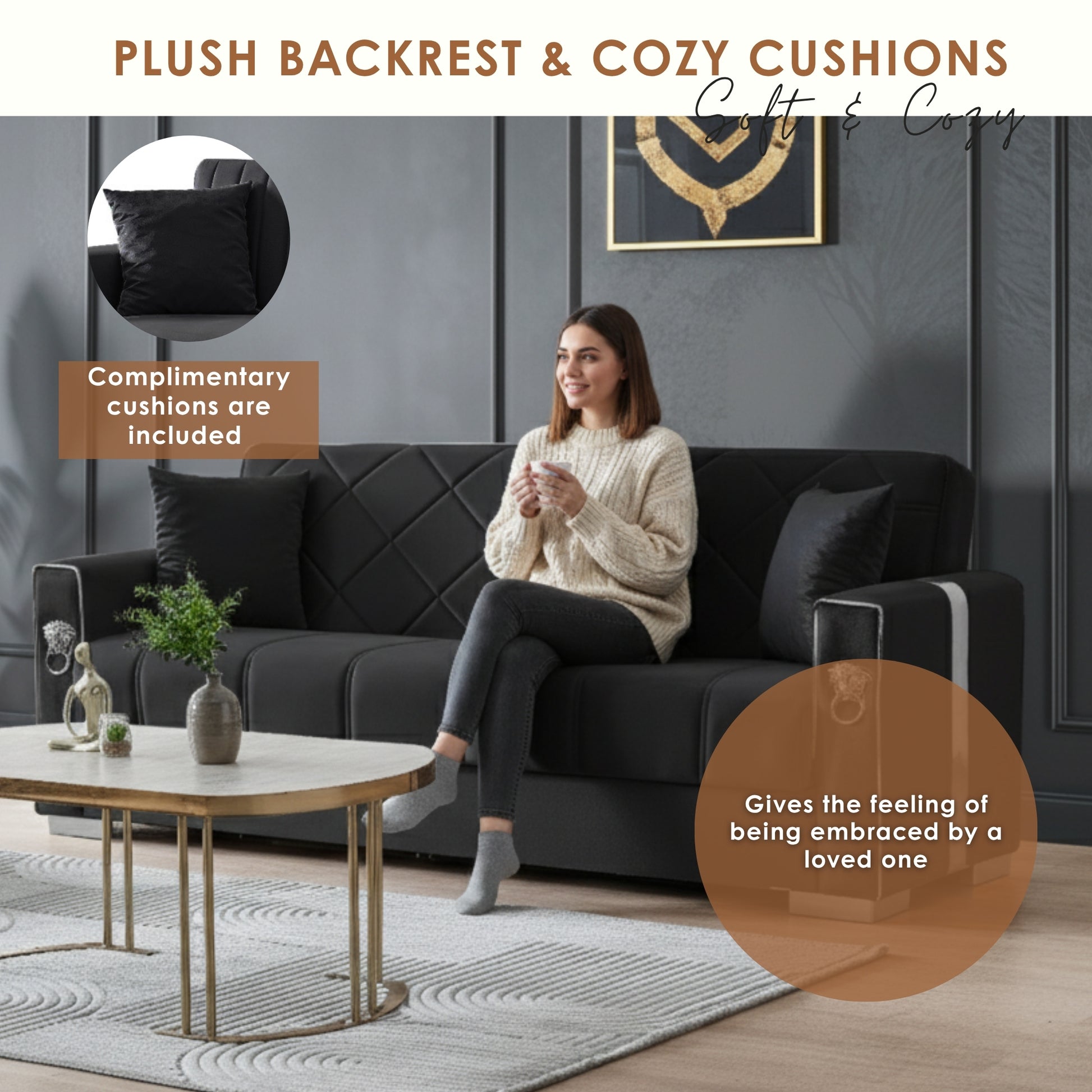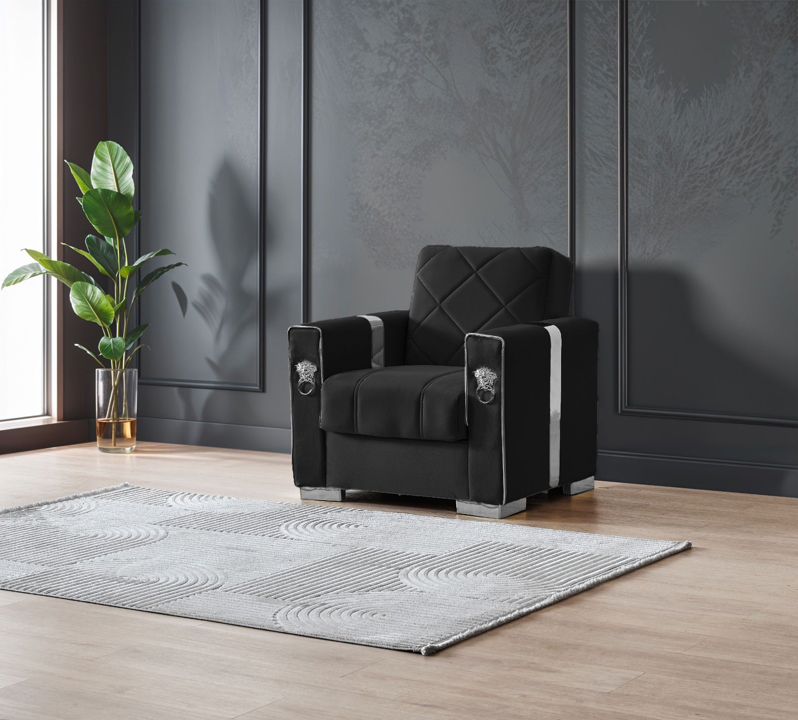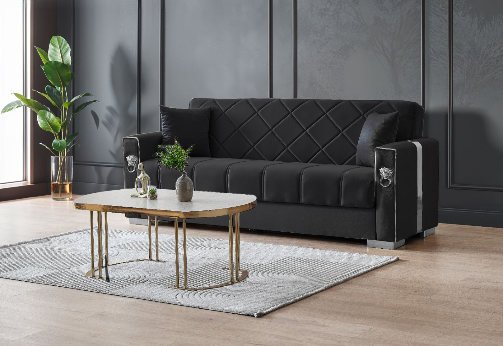 Lion Modern Black Silver 3+2+1 Seater Sofa Bed